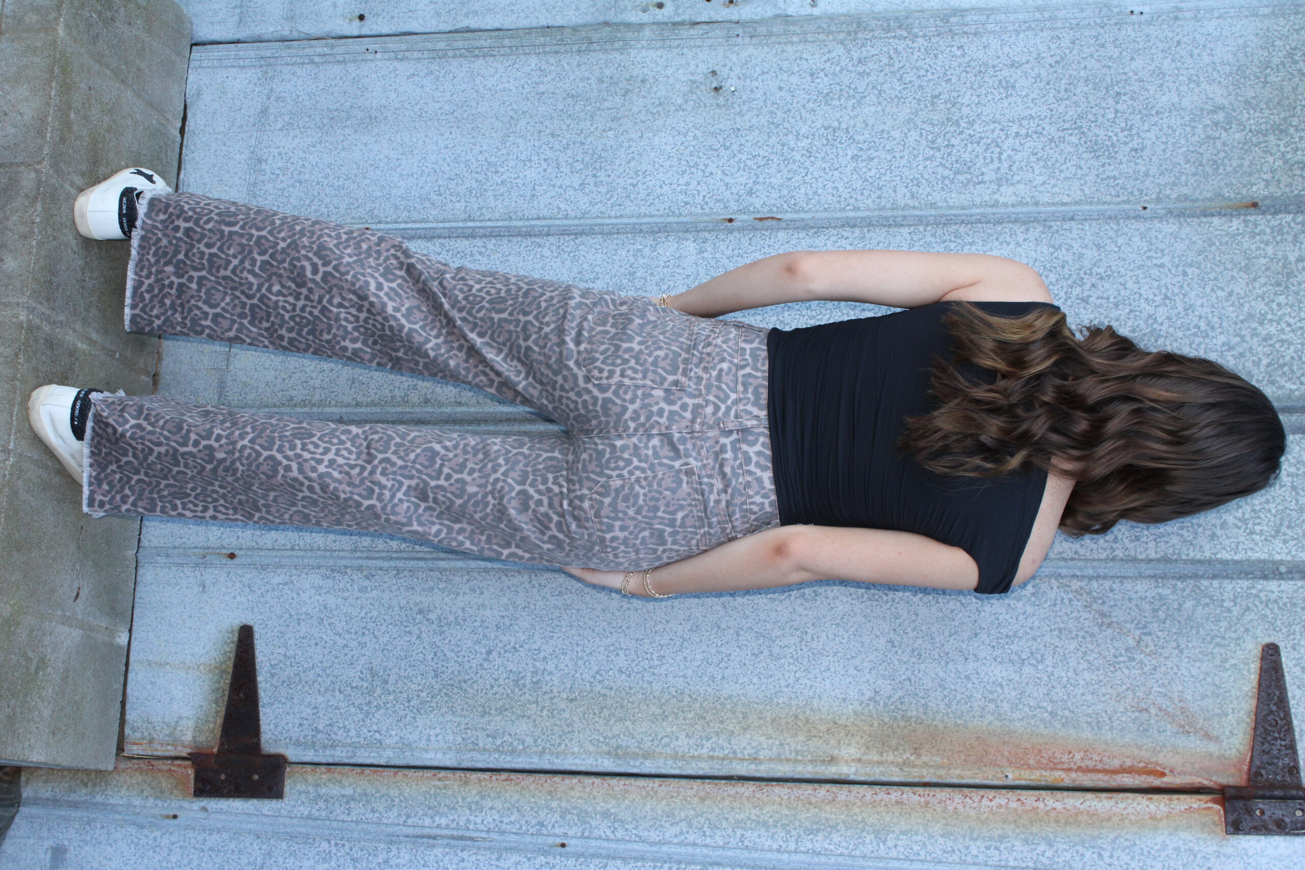 Leopard Frayed Edge Wide Leg High Waist Jeans